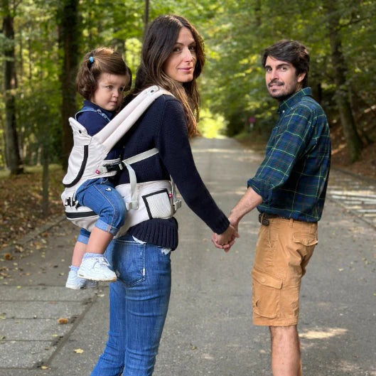 The ergonomic design of our innovative baby hip seat carrier ensures that your baby’s hips are always in the optimal “M” sitting position, with knees even at hip level. Parents' are kept comfortable, too, thanks to wide waistband providing full lumbar support. Offers 6 different carry options, multiple safety features and extra storage space for yours and your baby's essentials.